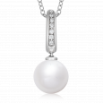Dámsky prívesok zo 14 karátového bieleho zlata. Prívesok so sladkovodnou perlou a diamantmi 0,04 ct H/SI3.