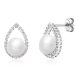 Elegantné dámske strieborné náušnice s perlou a čírymi zirkónmi vhodné na špeciálne príležitosti aj bežné nosenie.