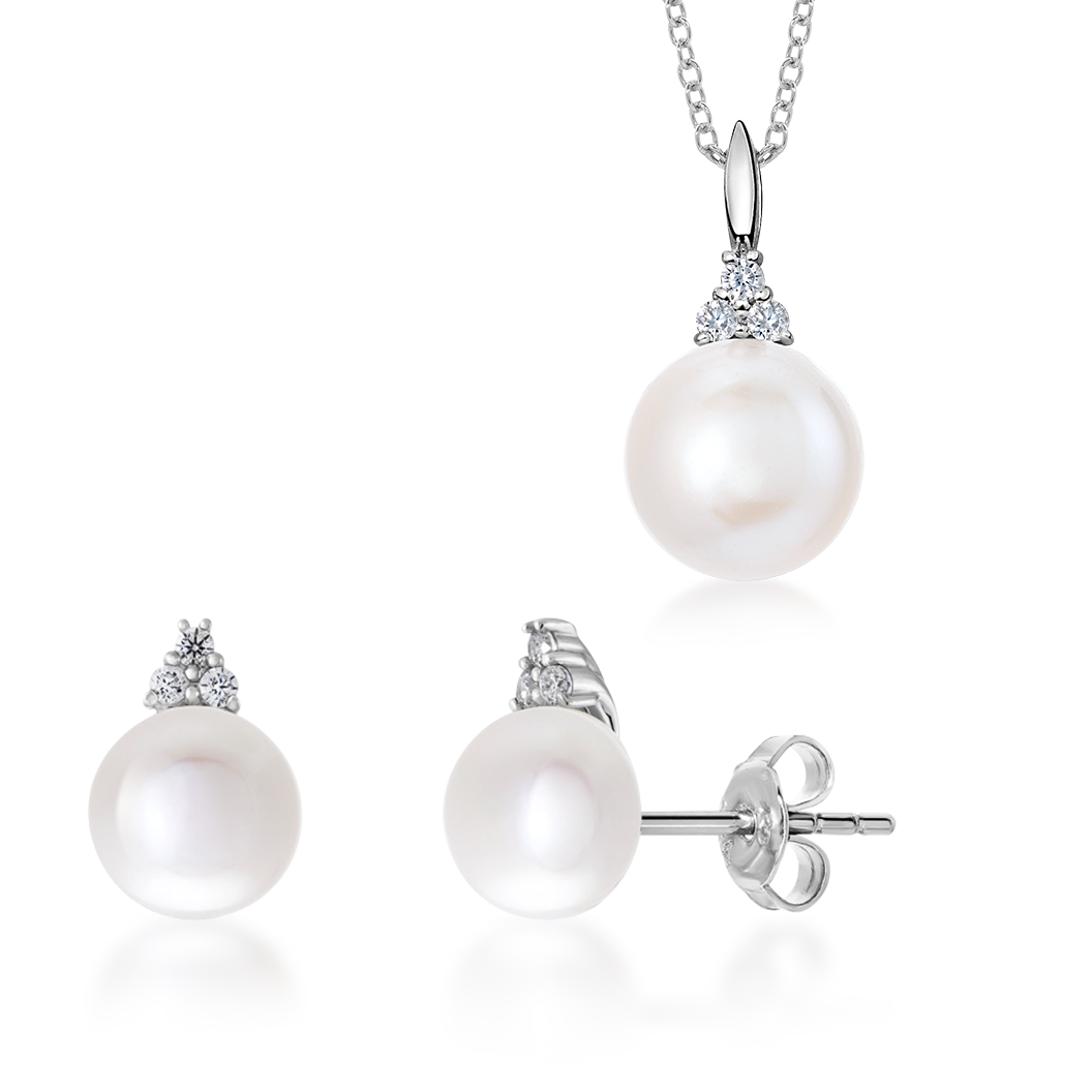 SOFIA perlový strieborný set náušnice a prívesok