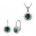Strieborný set so zirkónom zelenej farby a čírej farby.