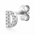 Napichovacia strieborná náušnica písmeno D so zirkónmi.