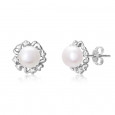 Dámske strieborné náušnice kvety s bielou sladkovodnou perlou.