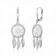 Dámske strieborné náušnice lapač snov so zirkónmi čírej farby.
