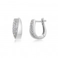 Štýlové dámske strieborné náušnice zdobené zirkónmi čírej farby.