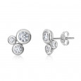 Jemné dámske strieborné náušnice tvorené tromi zirkónmi v puzdre.