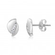 Strieborné náušnice zdobené zirkónmi čírej farby. Jedna časť náušničiek je matná.