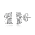 Strieborné dámske náušnice mačky so zirkónmi čírej farby.