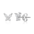 Dámske strieborné náušnice motýle so zirkónmi čírej farby.