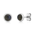 SOFIA strieborné dámske náušnice sú zdobené labradoritom osadeným v hladkej striebornej obrube.