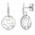 Dámske strieborné náušnice s ornamentom, na úchyte zdobené zirkónmi čírej farby.
