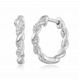 Dámske strieborné točené kruhy so zirkónmi čírej farby.