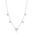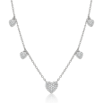 Dámsky strieborný náhrdelník so srdiečkami zdobenými zirkónmi čírej farby.