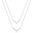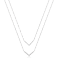 Dámsky strieborný "véčkový" náhrdelník so zirkónmi čírej farbyv v dvojitom vrstvenom vzhľade.