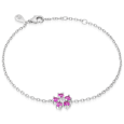 Dámsky strieborný náramok s kvietkom so zirkónmi ružovej a čírej farby.