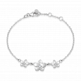 Dámsky strieborný náramok s tromi kvetmi, ktorý zdobia číre zirkóny.
