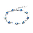 Dámsky strieborný náramok s kvetmi, ktoré sú zdobené modrými zirkónmi.
