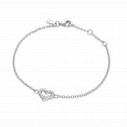 Dámsky strieborný náramok so srdiečkom, ktoré je zdobené zirkónmi.