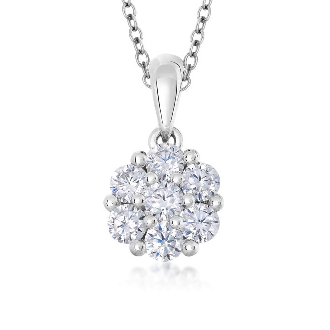 Jemný strieborný prívesok v tvare kvetinky, zdobený čírymi zirkónmi.
