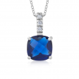 Strieborný prívesok zdobený zirkónmi čírej farby a štvorcovým zirkónom modrej farby.