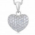 Dámsky strieborný prívesok srdce, ktoré je zdobené zirkónmi čírej farby.