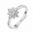 Dámsky strieborný prsteň kvet zdobený zirkónmi čírej farby.