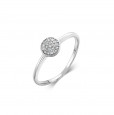 Strieborný prsteň zdobený zirkónmi čírej farby.