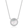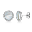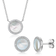 Strieborný set s perleťou a zirkónmi pozostávajúci z náušníc a náhrdelníka.