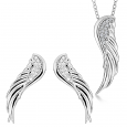 Strieborný set s anjelskými krídlami, ktoré sú zdobené zirkónmi.