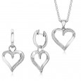Strieborný set so srdiečkami, ktoré sú zdobené zirkónmi.
