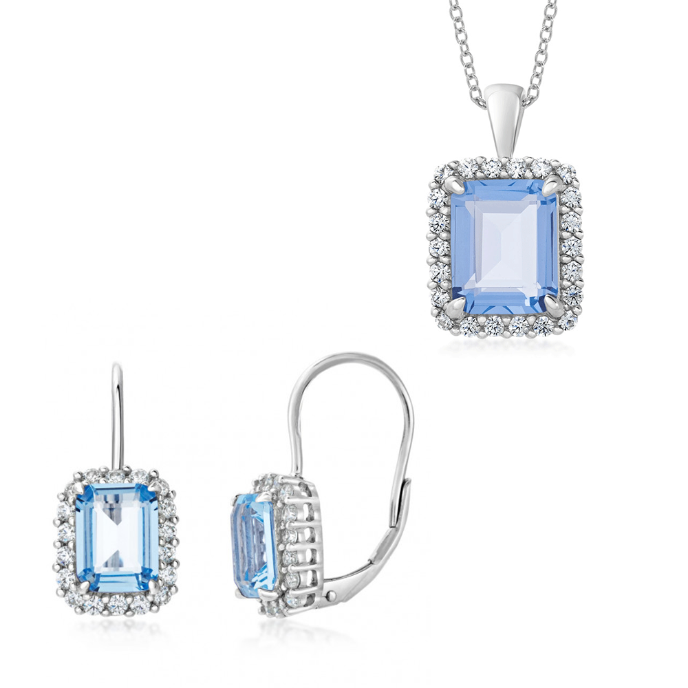 Strieborný set pozostávajúci z prívesku a náušníc so zirkónmi.