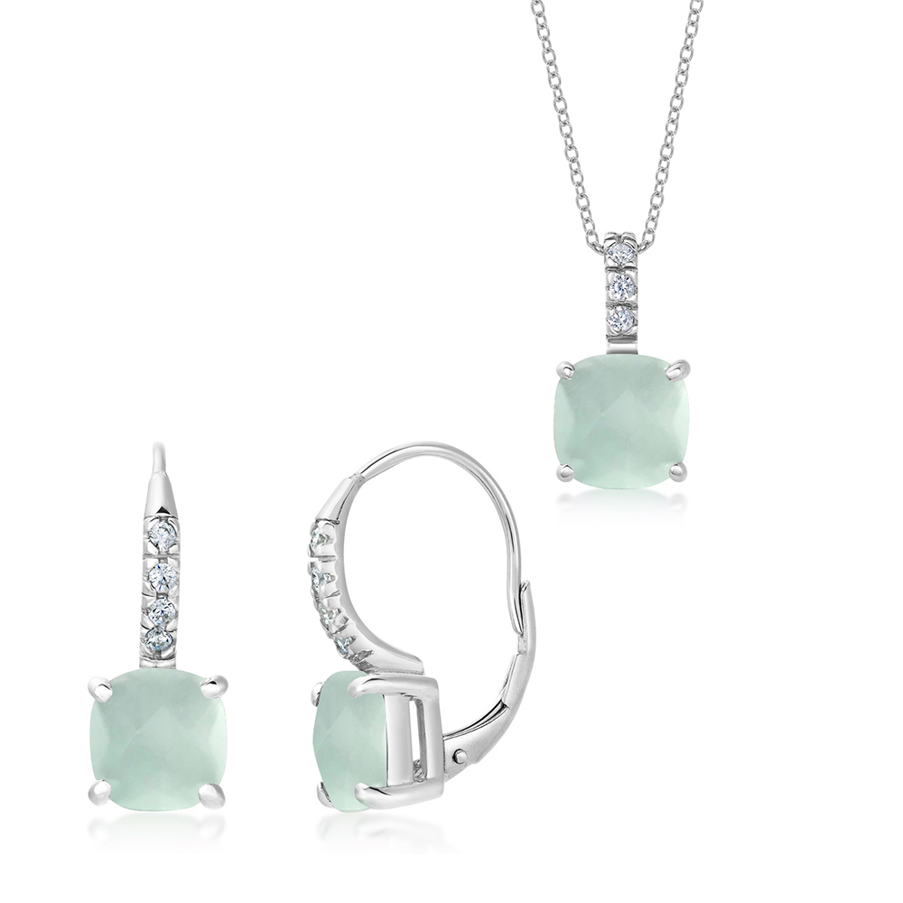 Strieborný set pozostávajúci z prívesku a náušníc so zirkónmi.