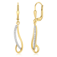 Dámske zlaté visiace náušnice vlnky so zirkónmi čírej farby vyrobené zo 14 karátového žltého a bieleho zlata.