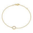 Dámsky náramok SOFIA zo 14-karátového žltého zlata tvorí jemná retiazka doplnená symbolom kruhu – karmy, ktorý je zdobený trblietavými čírymi zirkónmi.