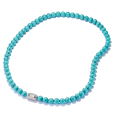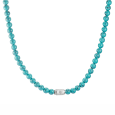 Náhrdelník THOMAS SABO z kolekcie Elyndra s korálkami v tyrkysovom vzhľade pôsobí sviežo a prirodzene elegantne. Hladko leštené korálky z imitácie tyrkysu vytvárajú harmonický celok, ktorý prináša pocit pokoja, rovnováhy a pozitívnej energie.