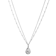 Dvojitá retiazka zo striebra vytvára elegantný vrstvený efekt. Dominantou je prívesok v tvare oka s jemným gravírovaním, doplnený žiarivými čírymi zirkónmi. Symbolika oka predstavuje jasnosť, smerovanie a vnútornú rovnováhu, vďaka čomu má náhrdelník nielen estetickú, ale aj osobnú hodnotu.