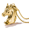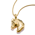 Retiazka zo striebra s 18k pozlátením nesie detailne prepracovaný 3D prívesok v tvare konskej hlavy. Jemné gravírovanie hrivy a žiarivé číre zirkóny v očiach dodávajú šperku život a eleganciu. Motív koňa predstavuje silu, nezávislosť a vnútornú energiu, vďaka čomu má náhrdelník aj hlbší význam.