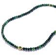 Náhrdelník je tvorený fazetovanými korálkami machového achátu, ktoré vynikajú sýtymi zelenými tónmi a prirodzenou kresbou. Dominantou je stredová korálka zo striebra s 18k pozlátením v motíve oka, doplnená zeleným kameňom a jemným gravírovaním. Tento detail dodáva šperku ochranný význam a osobitý charakter.