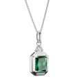 Dominantou náhrdelníka je prívesok so smaragdovozeleným kameňom, ktorého precízny osemuholníkový výbrus zvýrazňuje jeho hĺbku a žiarivý lesk. Čisté línie a minimalistické prevedenie dodávajú šperku nadčasový charakter, zatiaľ čo intenzívna zelená farba pôsobí sviežo a sofistikovane. Tento výrazný, no zároveň jemný doplnok sa hodí na každodenné nosenie aj výnimočné príležitosti.