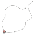 Dominantou náhrdelníka je prívesok v tvare srdca osadený červeným zirkónom, ktorý vyniká intenzívnou farbou a žiarivým leskom. Jemné číre zirkóny po stranách dodávajú dizajnu nežnú iskru a zvýrazňujú jeho romantický charakter. Strieborné prevedenie pôsobí elegantne a nadčasovo, vďaka čomu je šperk vhodný na každodenné nosenie aj výnimočné chvíle.