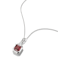 Dominantou náhrdelníka je prívesok s červeným kameňom v precíznom osemuholníkovom výbruse, ktorý vyniká intenzívnou farbou a žiarivým leskom. Minimalistické strieborné prevedenie zvýrazňuje čisté línie a dodáva šperku nadčasový charakter. Jemné číre zirkóny dopĺňajú dizajn a pridávajú mu iskru.