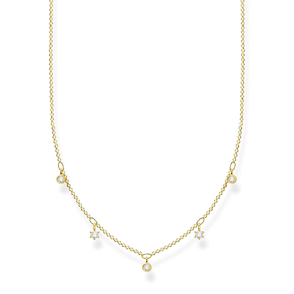 Dámsky strieborný minimalistický náhrdelník Thomas Sabo s čírymi zirkónmi, pozlátený 18 karátovým žltým zlatom.