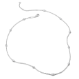 Minimalistická retiazka zo striebra je zdobená drobnými fazetovanými čírymi zirkónmi, ktoré sú rovnomerne rozmiestnené po celej dĺžke. Ich jemné odlesky pôsobia elegantne a čisto, vďaka čomu je náhrdelník ideálny na každodenné nosenie aj vrstvenie s ďalšími šperkami.