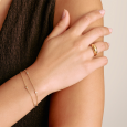 Dvojradový retiazkový dizajn zo striebra s 18k pozlátením vytvára moderný vrstvený vzhľad. Náramok je zdobený drobnými čírymi zirkónmi, ktoré sú pravidelne osadené a pri pohybe krásne odrážajú svetlo. Pôsobí nenápadne luxusne a ľahko sa kombinuje s ďalšími šperkami.