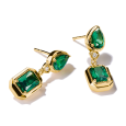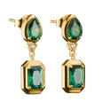 Náušnice zdobí kombinácia zelených sklo-keramických kameňov v kvapkovom a oktagonovom bruse, ktoré vytvárajú zaujímavý kontrast tvarov a odrážajú svetlo pri každom pohybe. Medzi nimi je osadený číry zirkón, ktorý dodáva šperku jemný lesk a zvýrazňuje celkový dizajn. Pozlátené prevedenie podčiarkuje ich ženskosť a robí z nich ideálny doplnok na každodenné nosenie aj výnimočné príležitosti.