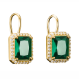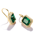 Dominantou náušníc je zelený kameň v oktagonovom bruse, ktorý zaujme svojou sýtou farbou a presnými líniami. Je lemovaný čírymi zirkónmi, ktoré dodávajú šperku žiarivý lesk a zvýrazňujú jeho tvar. Pozlátené prevedenie podčiarkuje ich luxusný vzhľad a robí z nich ideálny doplnok na každodenné nosenie aj výnimočné príležitosti.