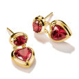 Dvojica zirkónov v sýtom granátovočervenom odtieni – jeden oválny a druhý v tvare srdca – vytvára hravú, pohyblivú kompozíciu, ktorá pri nosení krásne zachytáva svetlo. Teplý zlatý lesk podčiarkuje symboliku lásky a emócií, zatiaľ čo jemné línie dodávajú náušniciam ženskosť a nadčasovosť. Ideálny doplnok na každodenné nosenie aj ako darček s osobným významom.