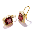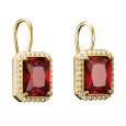 Dominantou náušníc je zirkón v sýtom granátovočervenom odtieni, zasadený do precízne tvarovaného osemuholníka, ktorý zvýrazňuje jeho hĺbku a lesk. Jemný lem z čírych zirkónov dodáva šperku žiarivý kontrast a elegantný akcent. Kombinácia čistých línií a teplého zlatého tónu pôsobí sofistikovane a nadčasovo – ideálna voľba na každodenné nosenie aj večerné príležitosti.