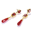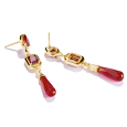 Dominantou náušníc je zirkón v sýtom granátovočervenom odtieni, doplnený o červený achát v podobe lesklej kvapky. Rôzne výbrusy vytvárajú zaujímavú hru svetla a pohybu, ktorá dodáva šperku hĺbku a rafinovaný charakter. Teplý zlatý lesk podčiarkuje intenzitu červených tónov a zvýrazňuje ženskosť aj sebavedomý štýl. Náušnice pôsobia výrazne, no zároveň si zachovávajú eleganciu vhodnú na špeciálne príležitosti.