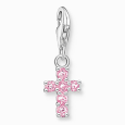 Strieborný prívesok charm "Pink cross silver" s ružovými zirkónmi.