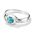 Jemný strieborný prsteň THOMAS SABO z kolekcie Elyndra s motívom oka pôsobí ako nenápadný, no významný talizman. Symbol oka predstavuje ochranu, intuíciu a vnútornú rovnováhu, zatiaľ čo kabošon s imitovaným tyrkysom v strede dodáva šperku pokojný farebný akcent.